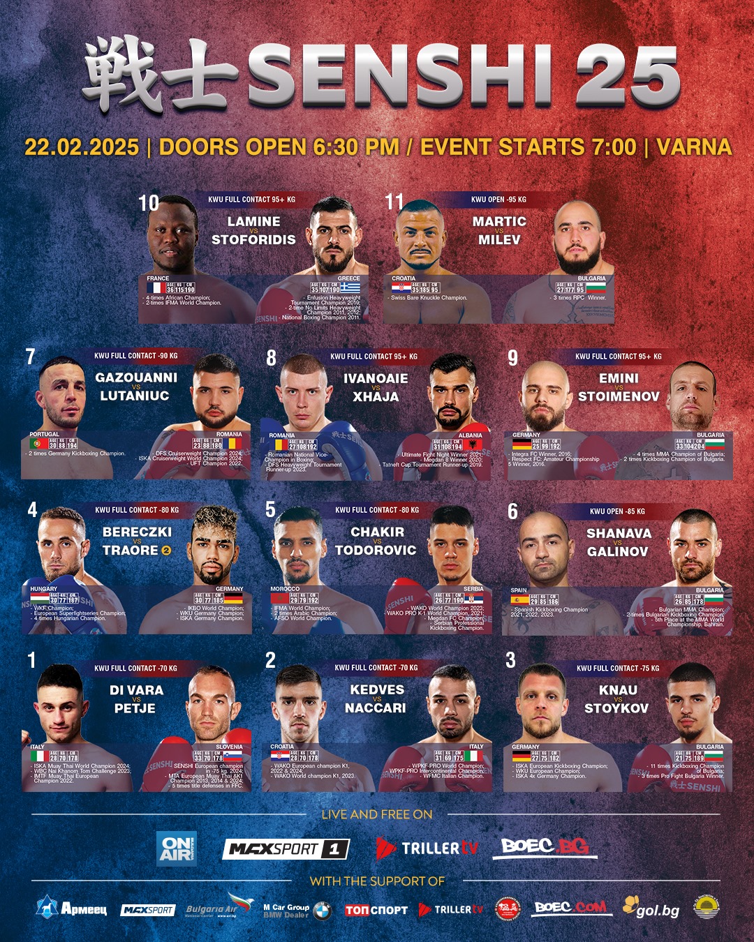 The wait is over! The full fight card for SENSHI 25 has been officially announced, promising an electrifying night of action on February 22 at the Congress Hall of the Palace of Culture and Sports in Varna, Bulgaria.