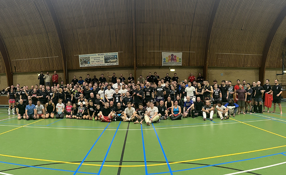 The seminar took place at Sporthallen De Witte in De Bilt, bringing together over 200 participants from across several countries. Fighters of all experience levels — from beginners to professionals — came from the Netherlands, Belgium, Germany, and England, united by one shared purpose: to grow as martial artists and learn from the very best in the sport.